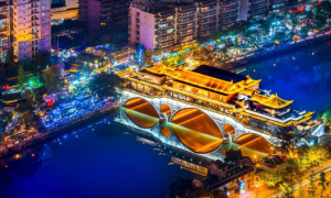入夜后,南桥的灯光亮起,桥下奔流的岷江水被染成梦幻的蓝色,这就是著名的“蓝眼泪”。逛灌县古城吃小吃,等天色暗下来去南桥看夜景吹晚风。美食推荐:渣渣面、张醪糟、葱葱卷、尤兔头。